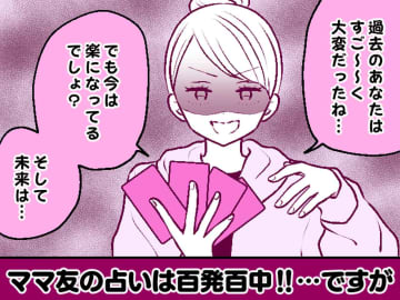 <占いママ友>が面倒くさい。 ママ友に悩みを打ち明けると → 百発百中!? しかし実は!?ニュースXFacebookはてブPocketLINE2023.12.24私の友人の話です。タロットカードの占いが趣味のママ友A子。いろんな人を捕まえては鑑定させて~! と言…もっと読む