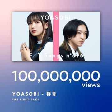 YOASOBI、「群青」の「THE FIRST TAKE」映像がYouTube1億回再生を突破ニュースXFacebookはてブPocketLINE2024.02.08“小説を音楽にするユニット”YOASOBIが、2021年にYouTubeチャンネル「THE FIRS…もっと読む