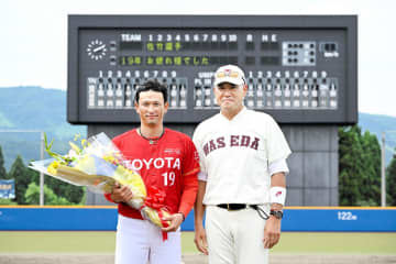早大がOBの社会人選手と対戦 “ミスター社会人野球”佐竹功年氏の引退セレモニー実施 小宮山監督が秘話明かすニュースXFacebookはてブPocketLINE2024.08.11今春の東京六大学野球リーグで7季ぶり47度目の優勝を飾った早大は10日、夏季キャンプを張る新潟・南魚…もっと読む